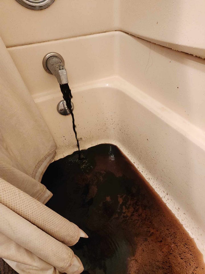 Black water flowing from the taps. Washing machines dying premature deaths. No one should have to drink or interact with water that looks this bad.